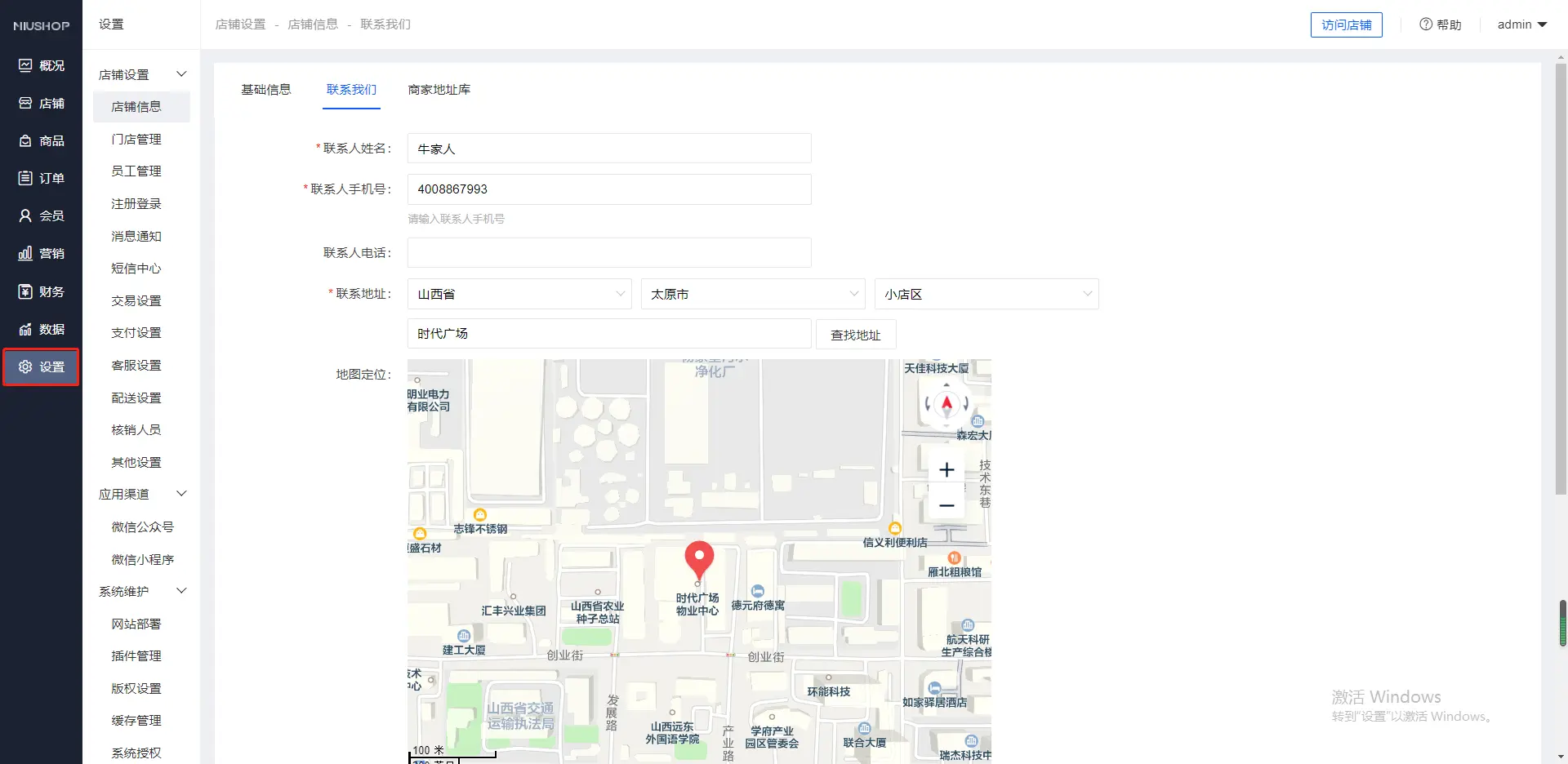 2.添加店铺商家联系方式、地址等