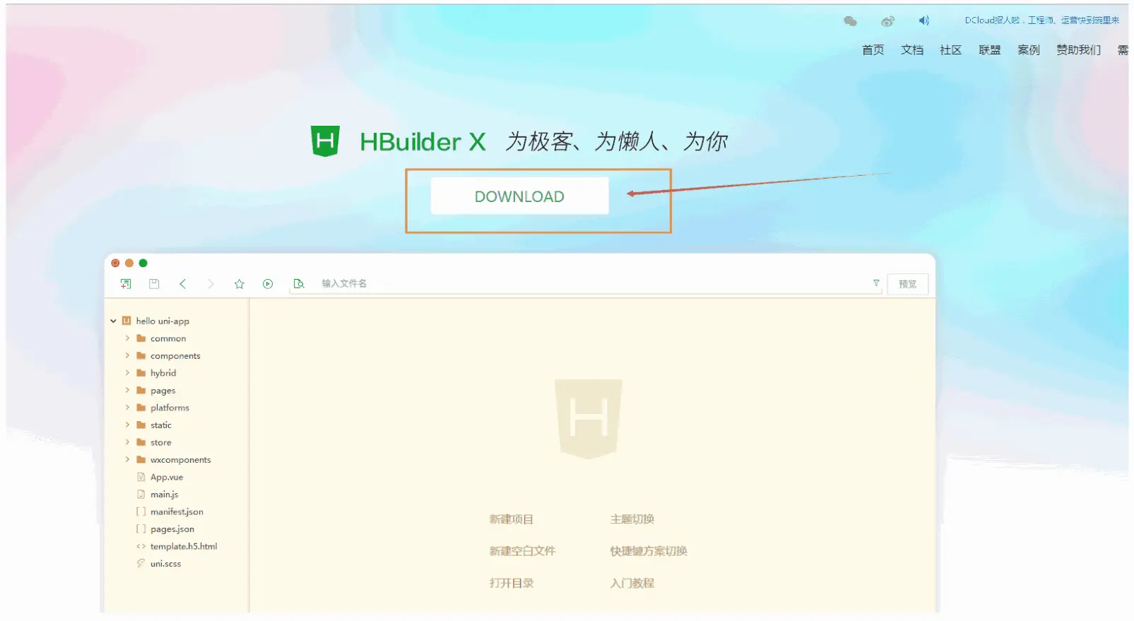 下载完小程序源码之后需要把源码导入到hbuilder中,下载hbuilder([https://www.dcloud.io/hbuilderx.html])