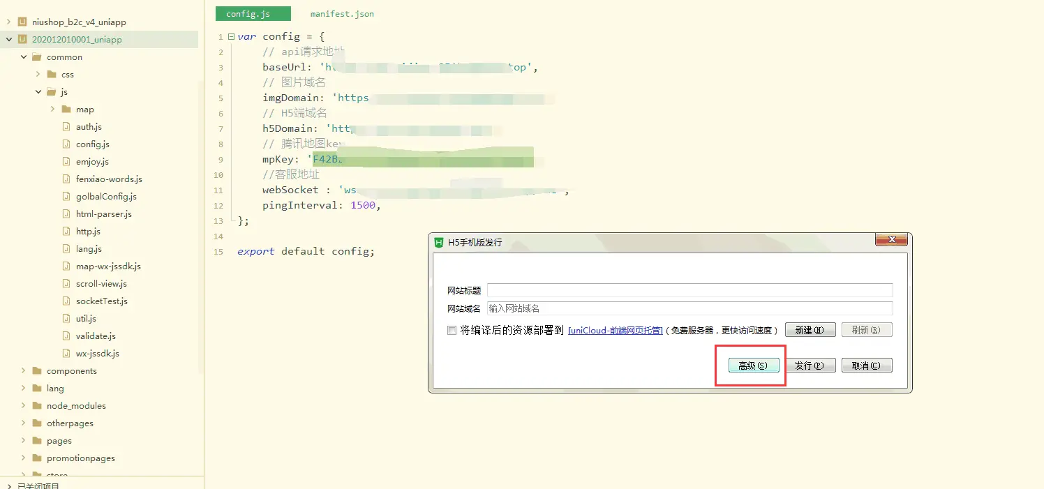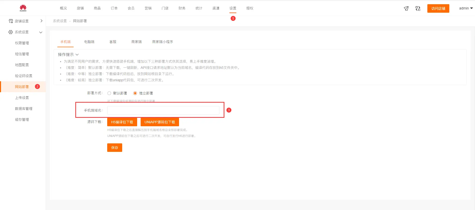 第九步:后台访问手机端域名设置需要修改成你的单独配置的域名