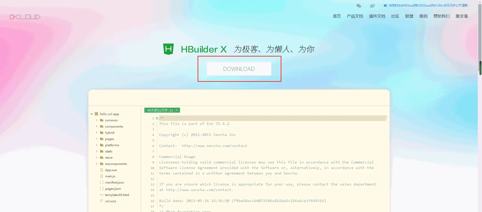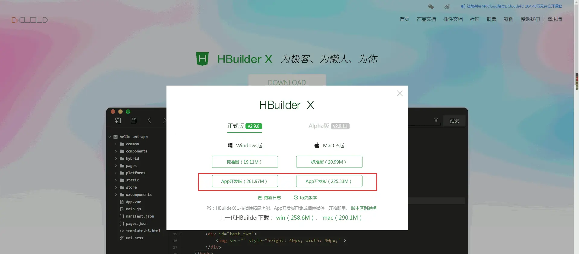第二步:下载hbuilder([https://www.dcloud.io/hbuilderx.html])