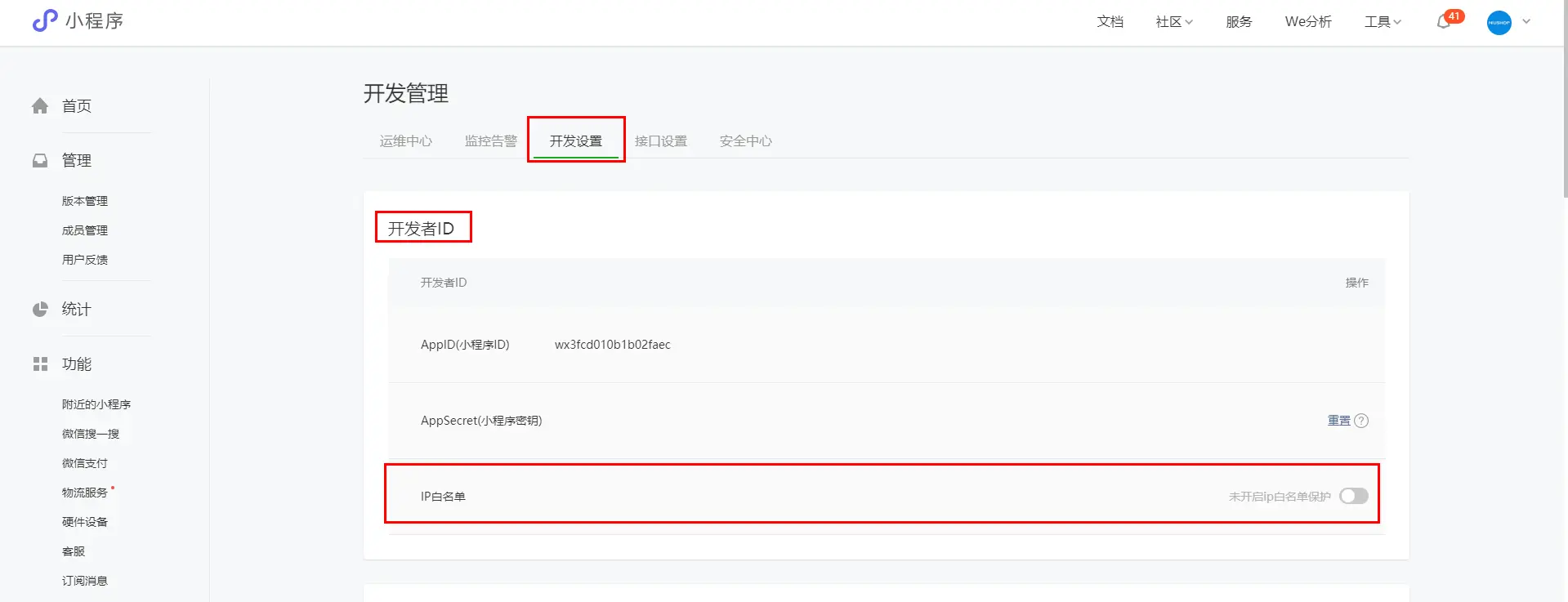 在开通其他接口之前先要在小程序平台添加白名单,位置在:开发-开发管理-开发设置-开发者ID-IP白名单;接下来需要开通二级商户号,以及其他视频号调用接口