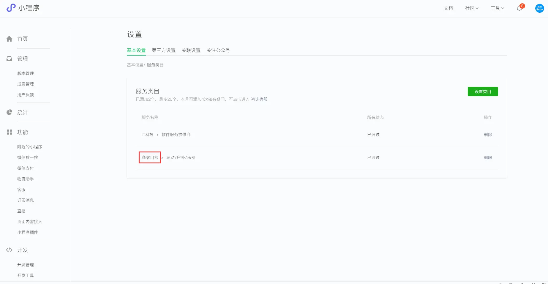【前提条件:首先需要配置好微信小程序;其次,小程序的类目需要有商家自营一级目录,这样可以顺利通过审核】