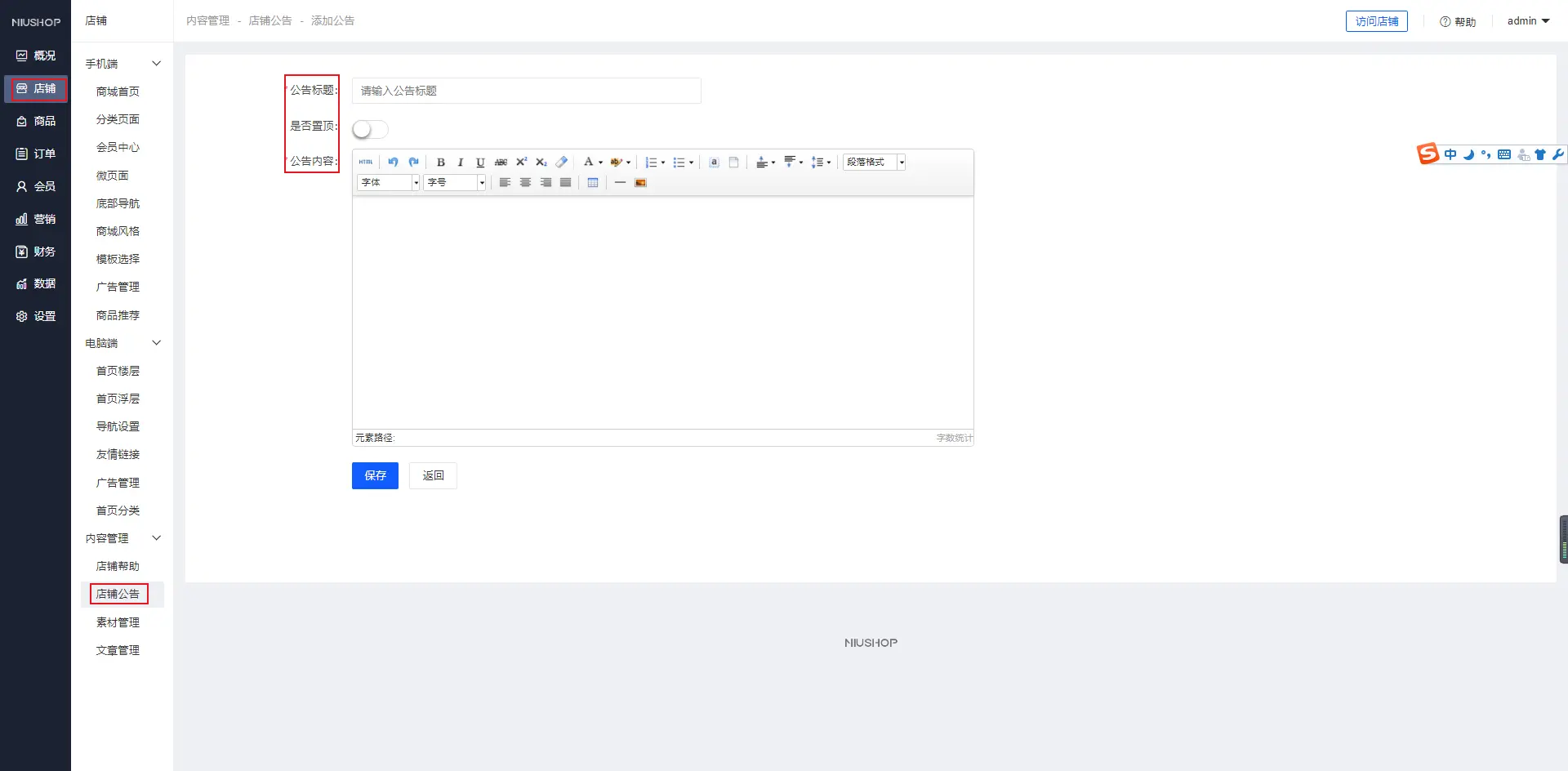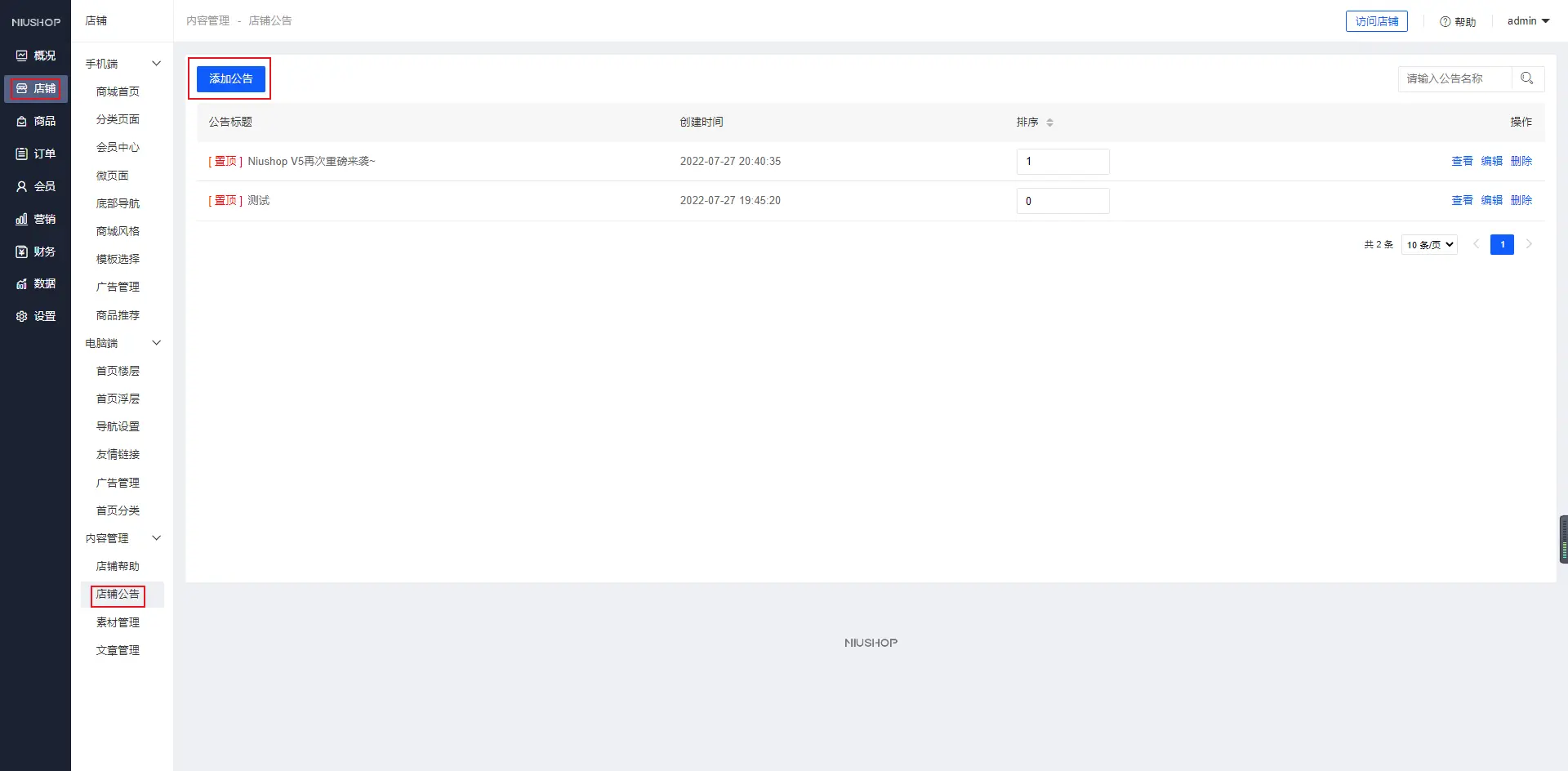 单商户系统,商城公告,您可以在这里添加商城公告,以颁布您的公告信息。
