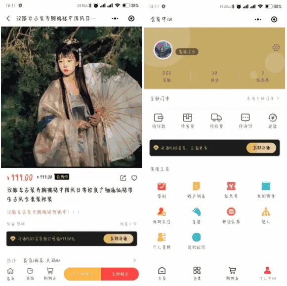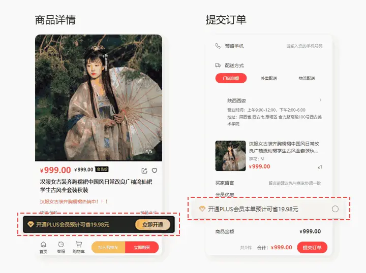 个人中心和商品详情页等多处引导用户开通超级会员,一目了然的价格差让用户开通商城超级会员!