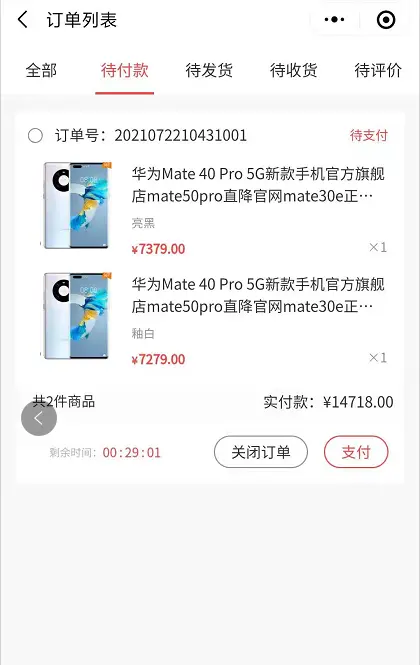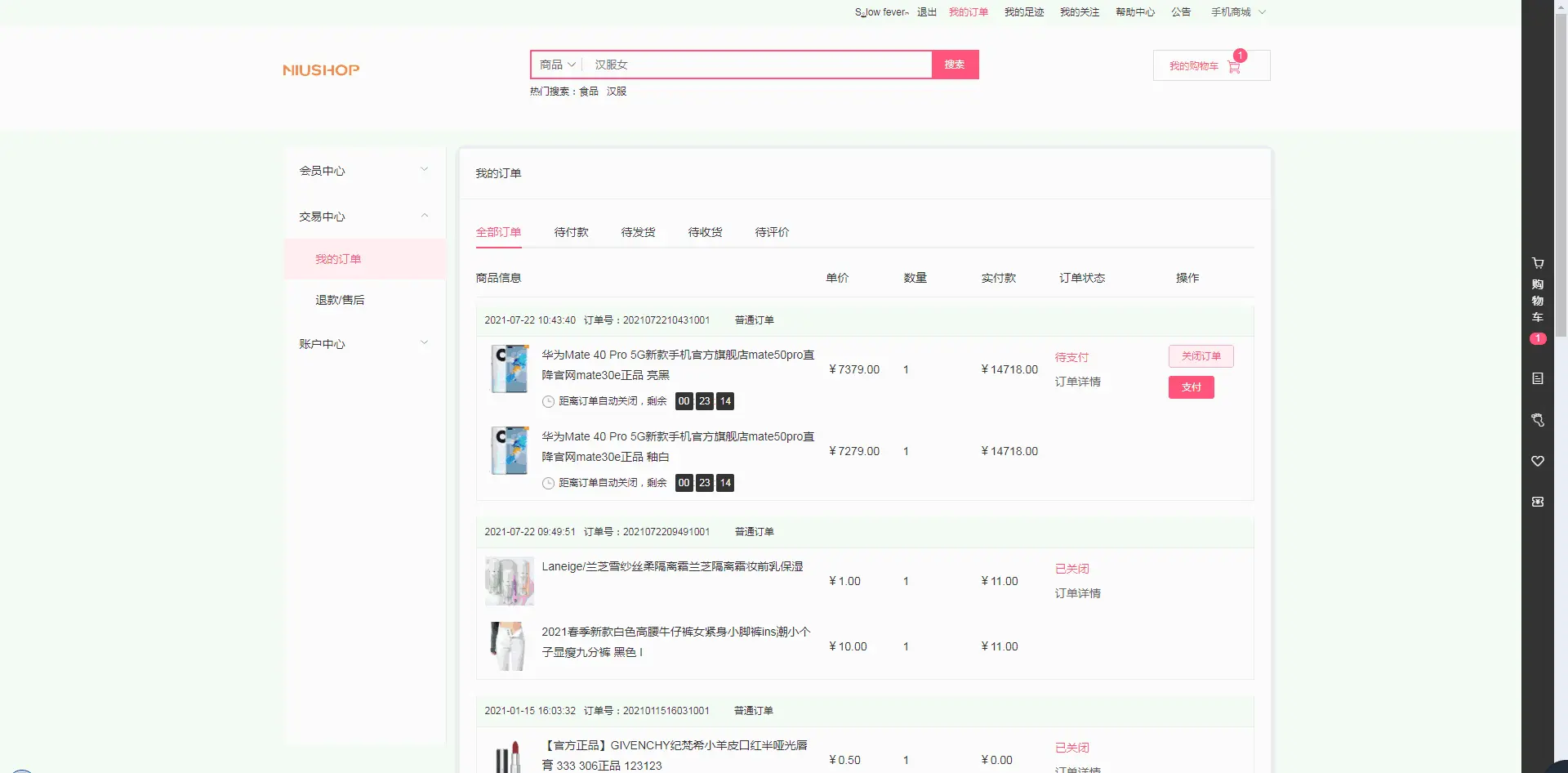 会员用户登录到小程序端或者PC端后,打开个人中心-在待付款页里选择付款