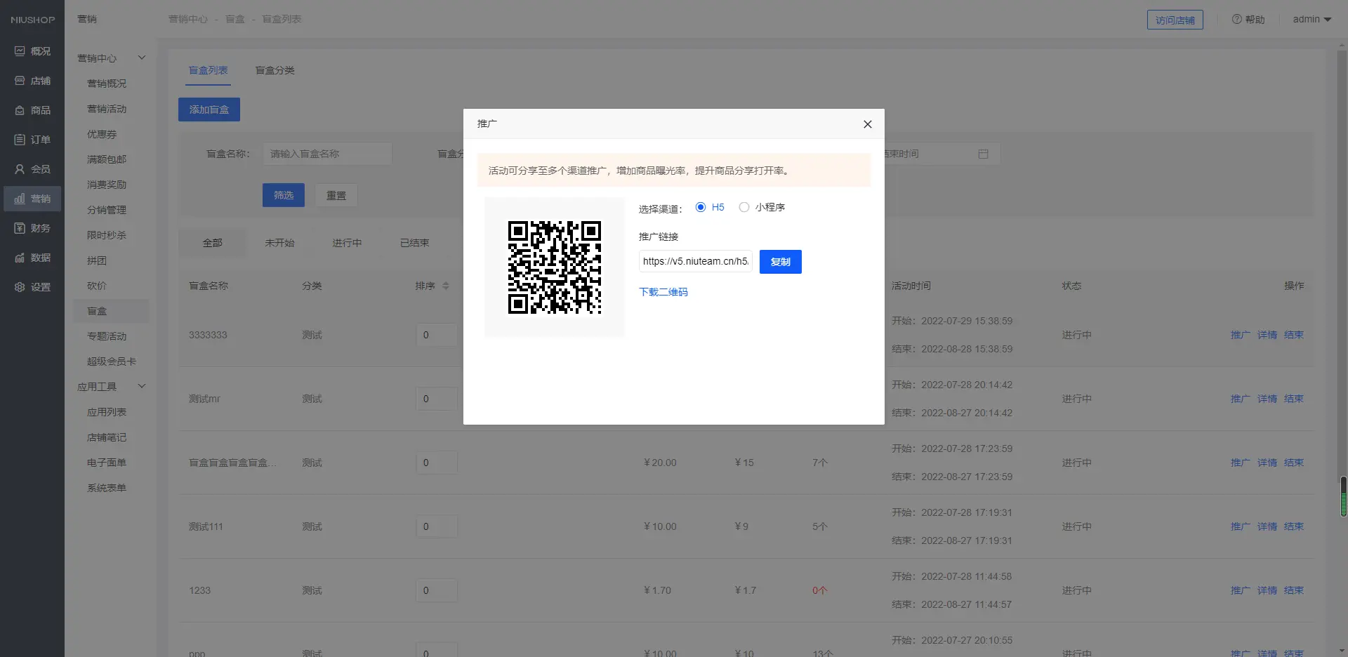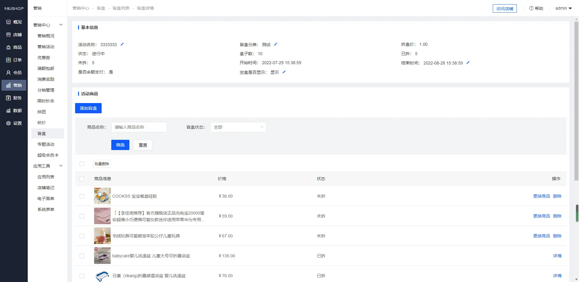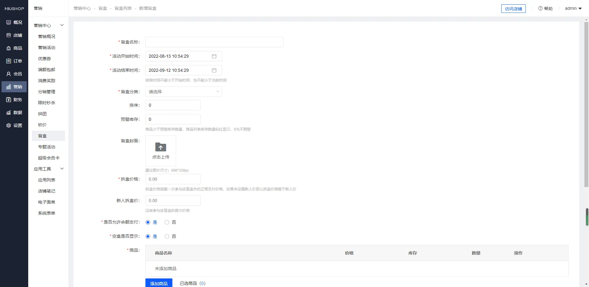 【单商户系统】营销活动-盲盒