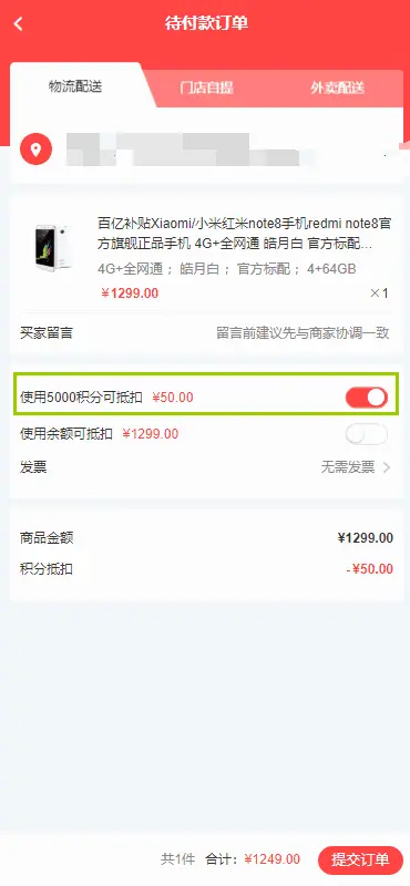 A:积分抵现开关:打开积分抵现开关,客户才可以使用积分抵现功能。关闭开关,客户在下单时无法是用积分抵现