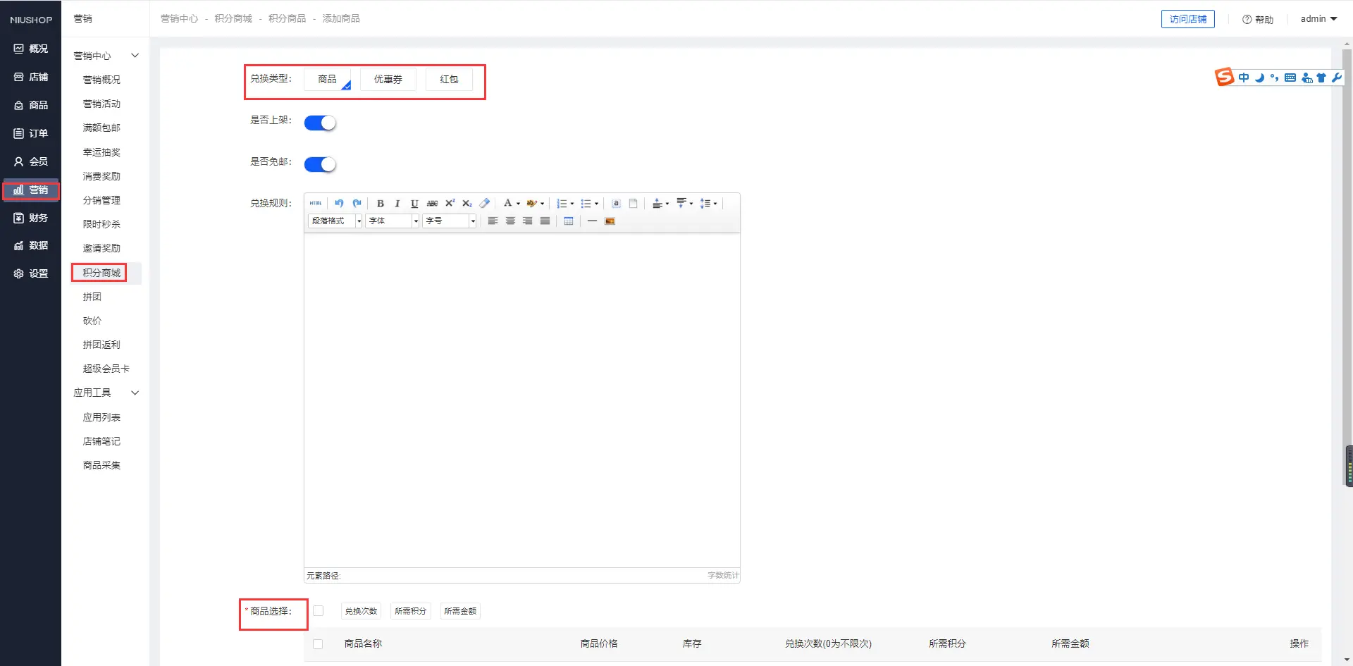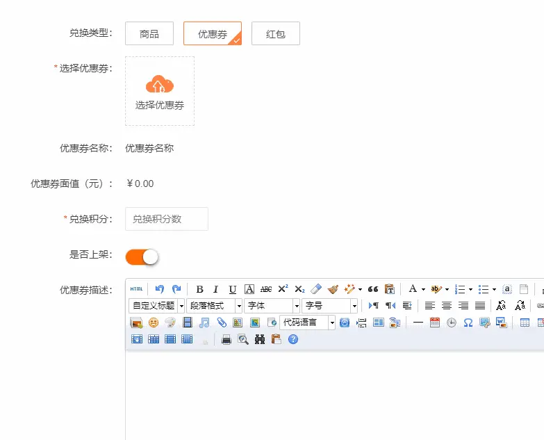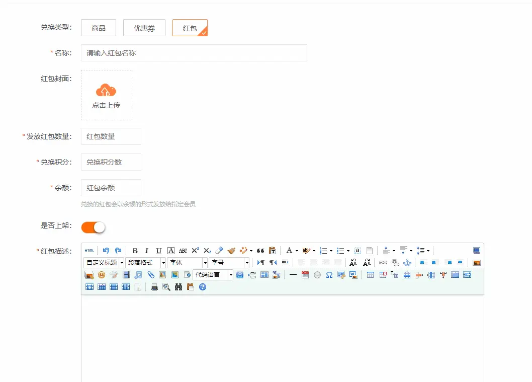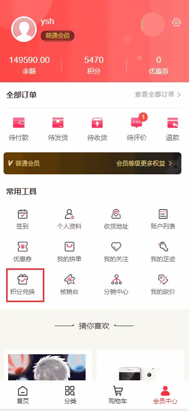积分商城可以将优惠券,商品和红包添加为积分兑换的商品