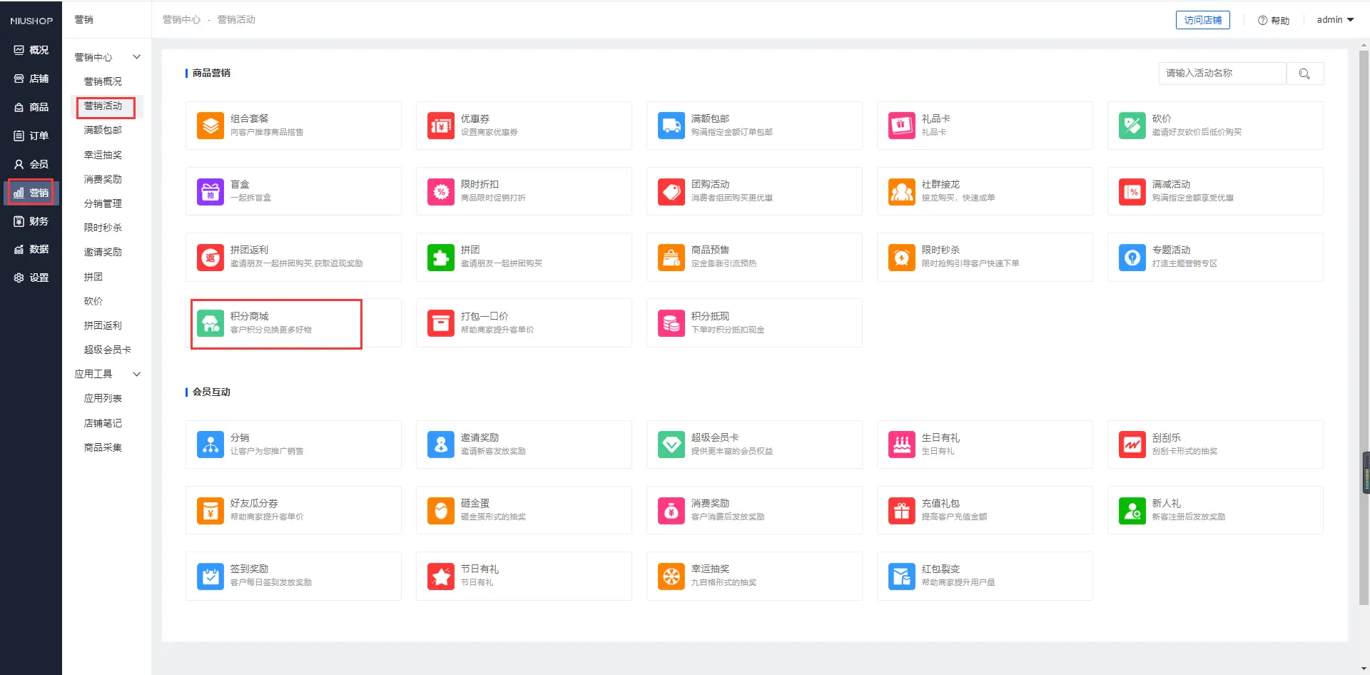单商户系统,积分商城作为营销应用,可以帮助您有效提高会员留存、刺激消费。此功能为付费应用。