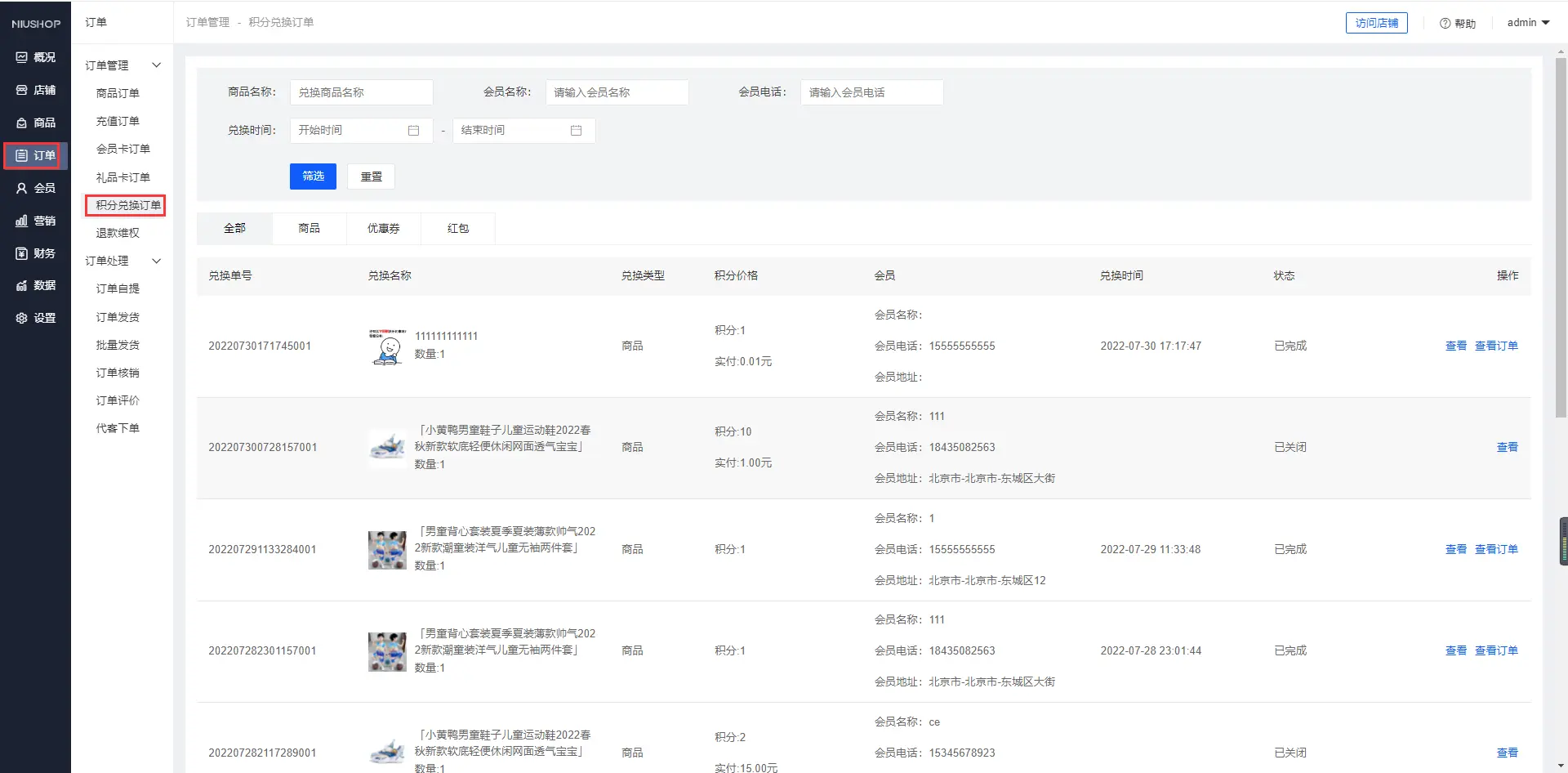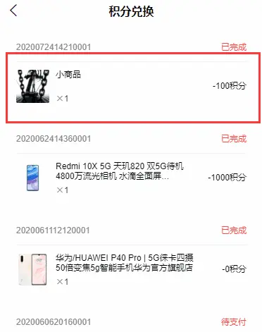 前端展示,所有兑换的积分订单是在会员中心兑换订单展示了