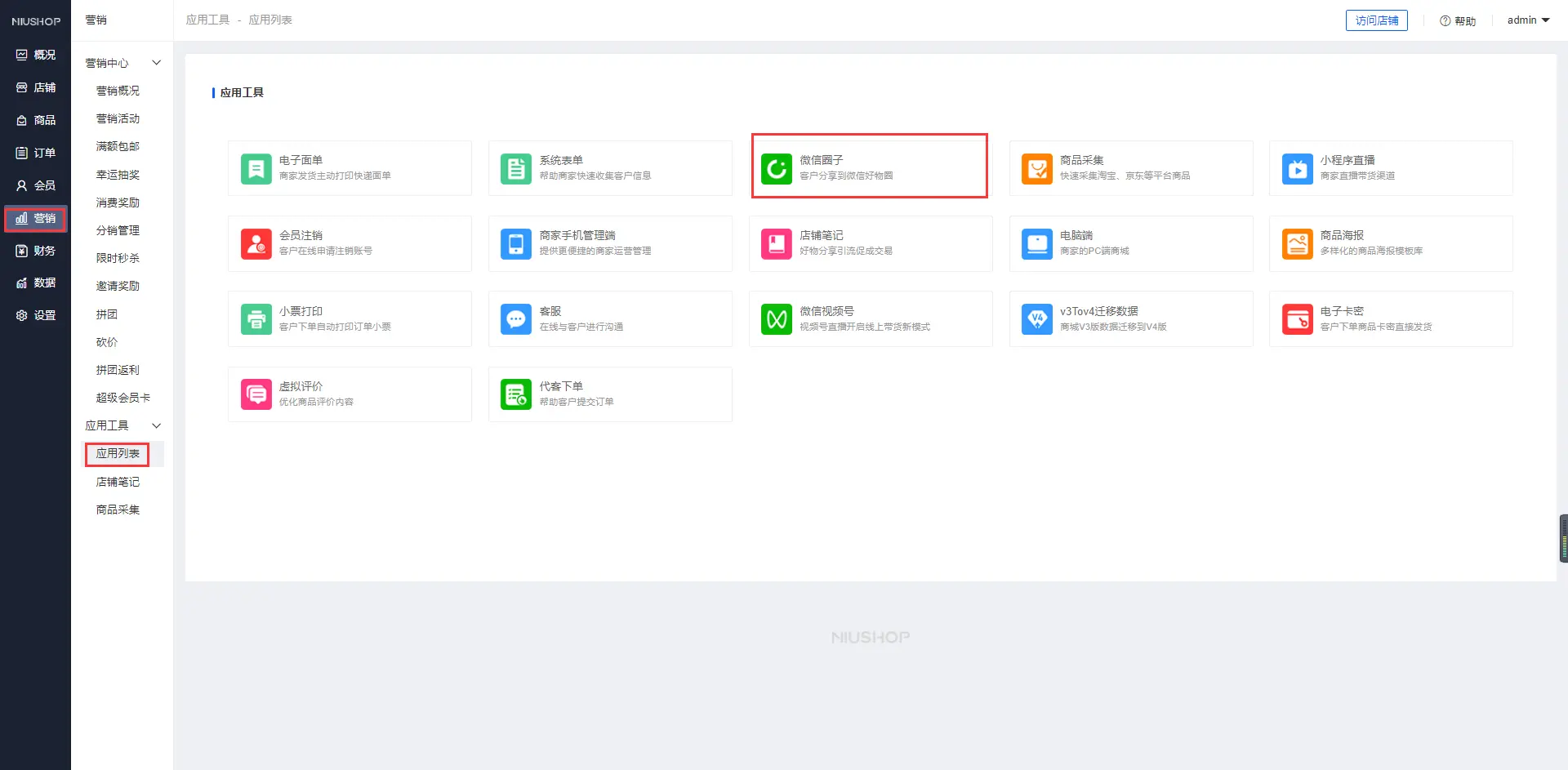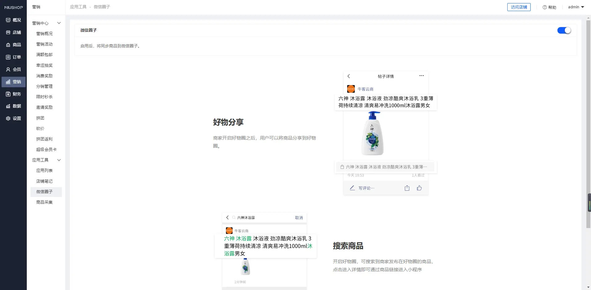 单商户系统,微信圈子是朋友间的好物分享,启用后,将同步商品和已支付的订单到微信圈子。