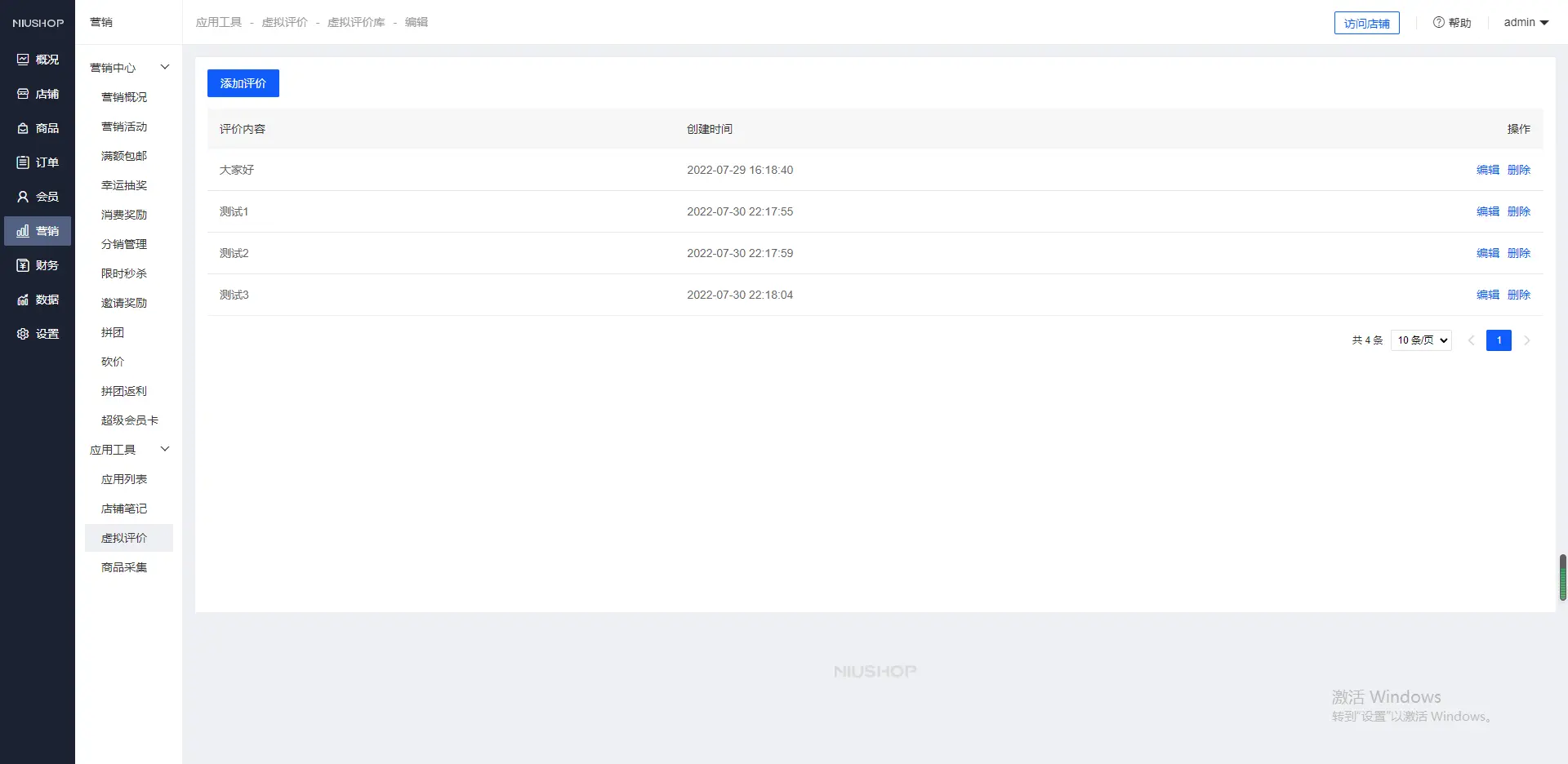 3、精选评价内容可在后台自由设置精选评价内容库,批量添加虚拟评价时可直接引用。