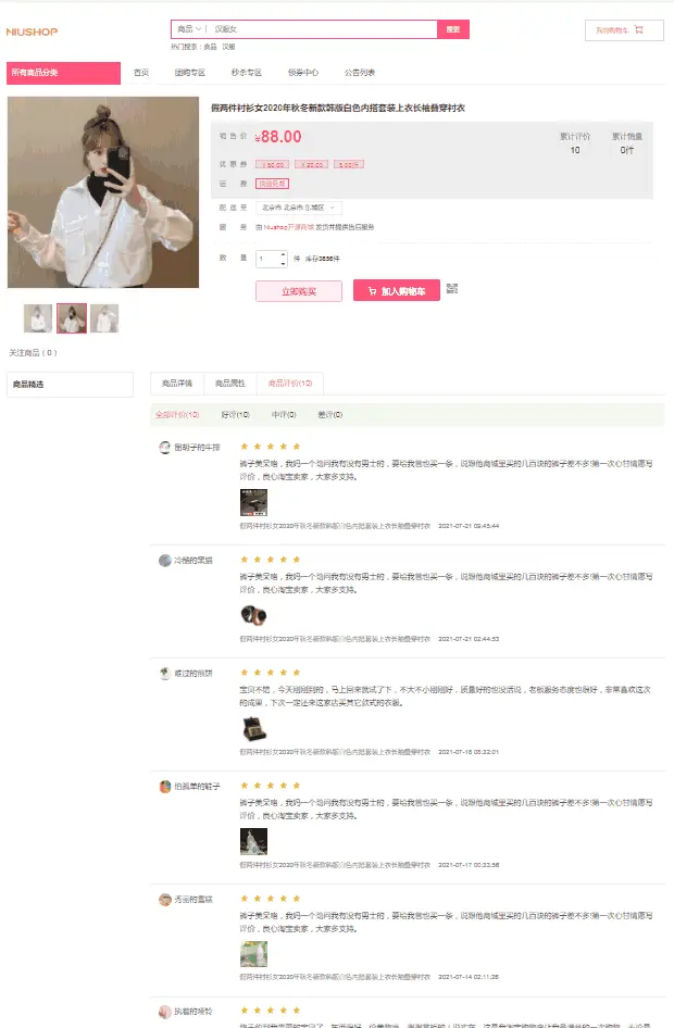 4、会员用户在PC端或小程序端浏览商品的时候可查看评论