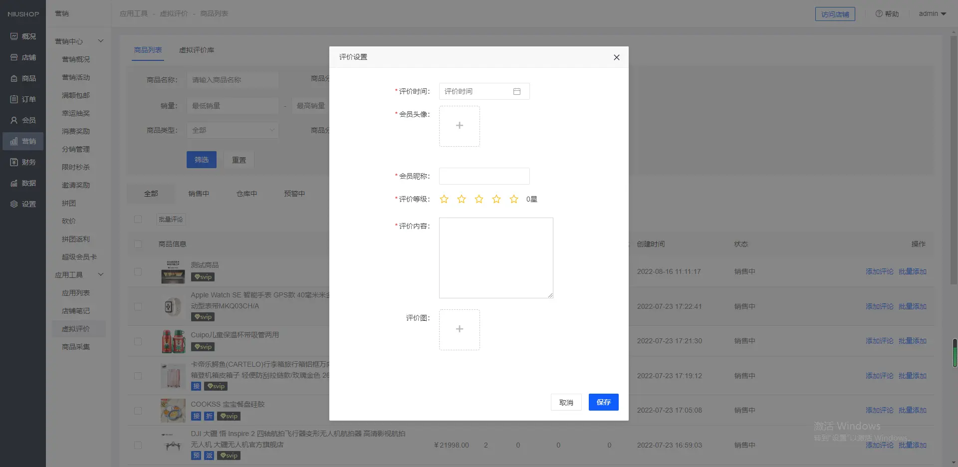 新店铺刚开不久,商品未产生实际交易订单,通过虚拟评价,可对新商品创建多条图文评价,增加店铺人气。