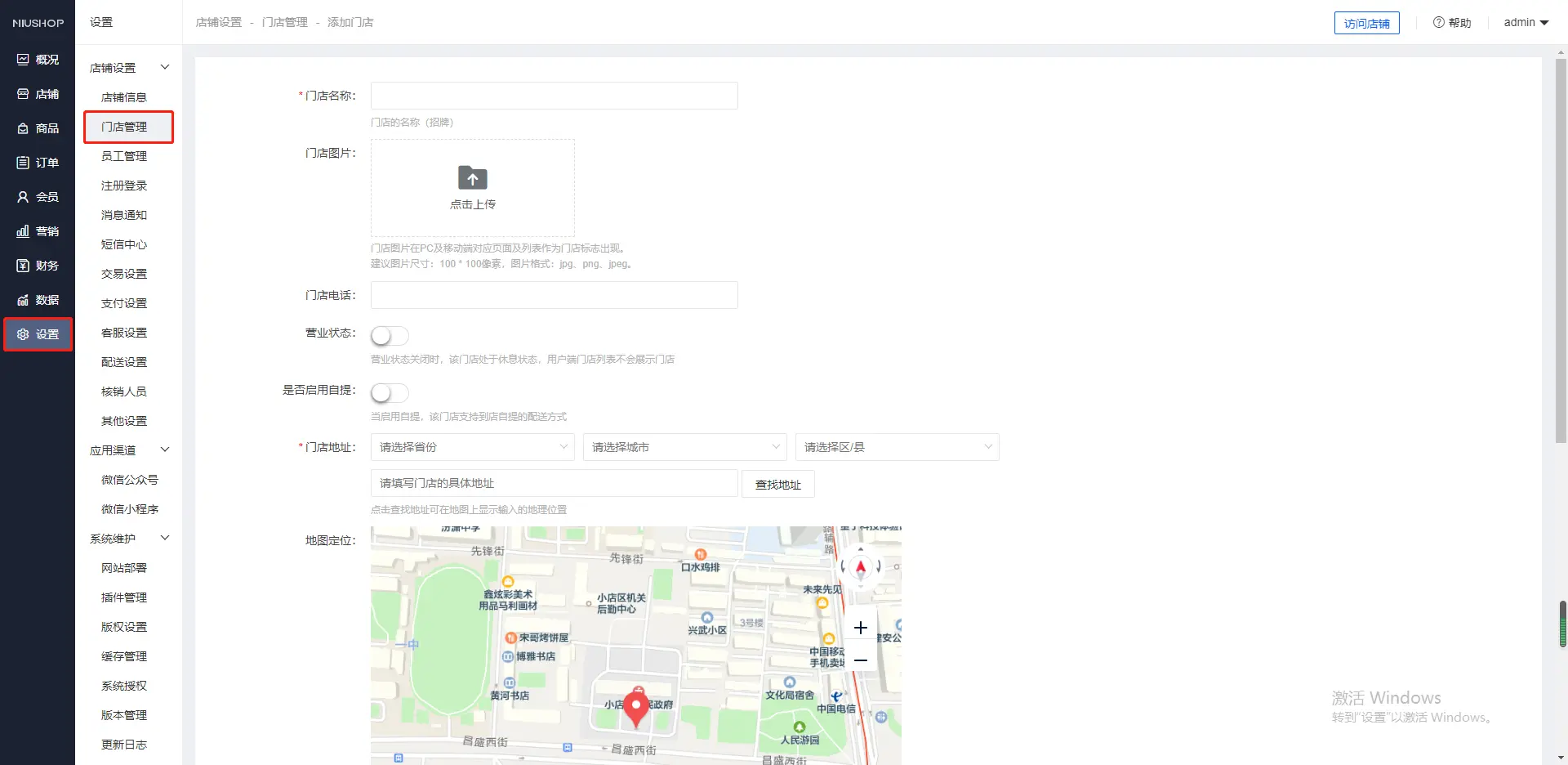 2.添加门店,按需填写门店名称、图片、地址、电话等