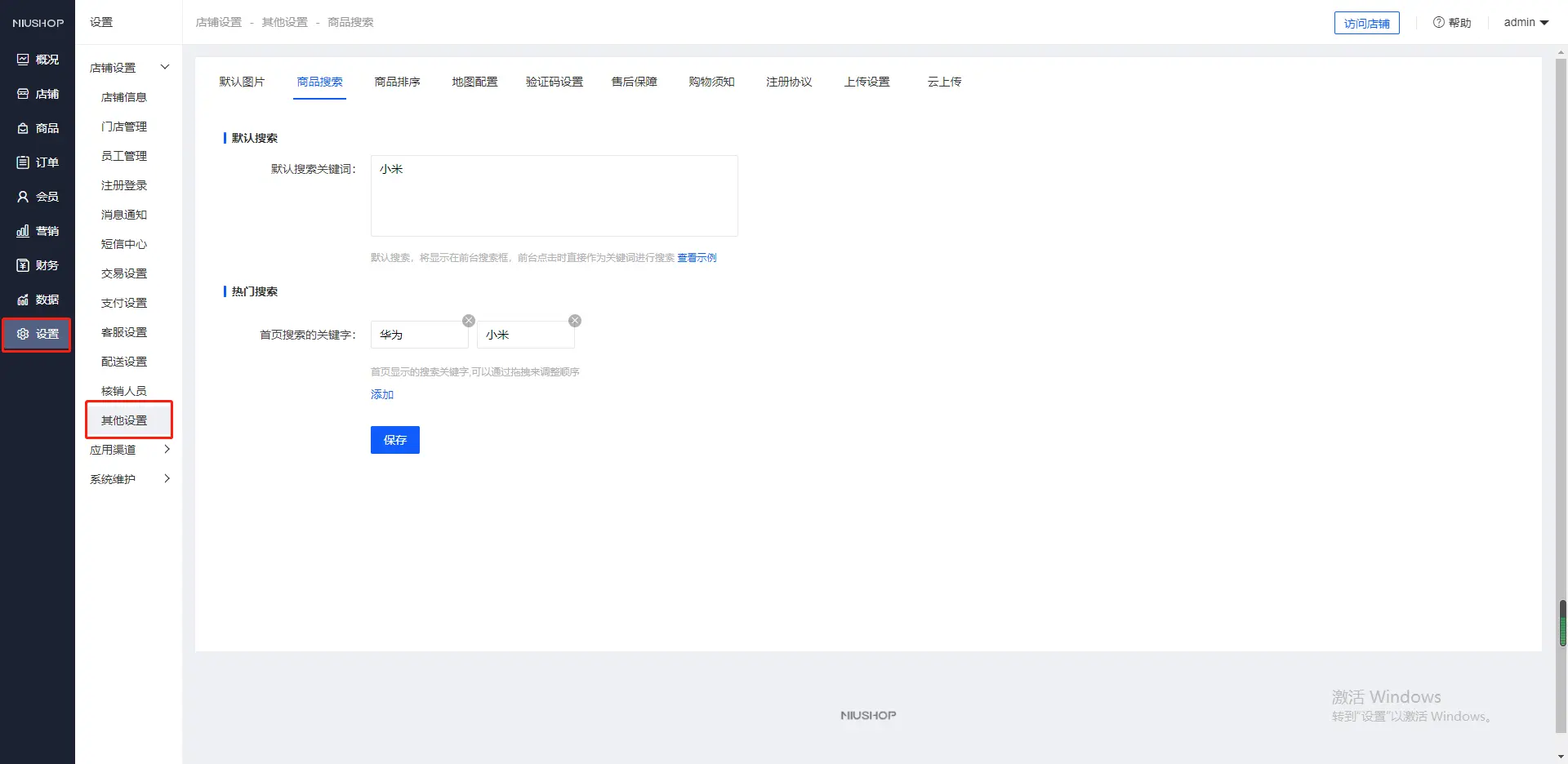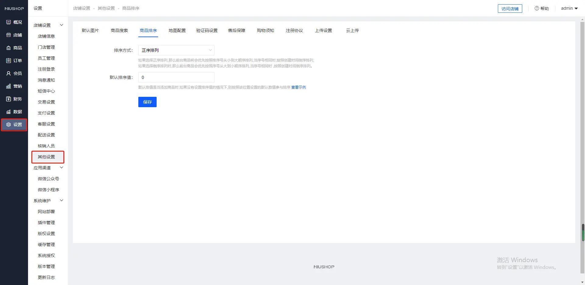 默认排序值:默认排值是当添加商品时,如果没有设置排序值的情况下,则按照该位置设置的默认数值参与排序