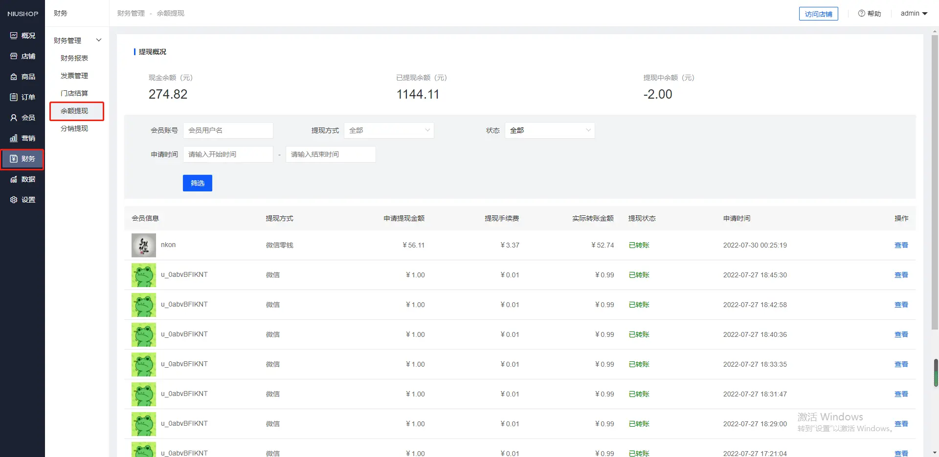 会员提现--该会员已提现或者正在提现的记录,可快速筛选