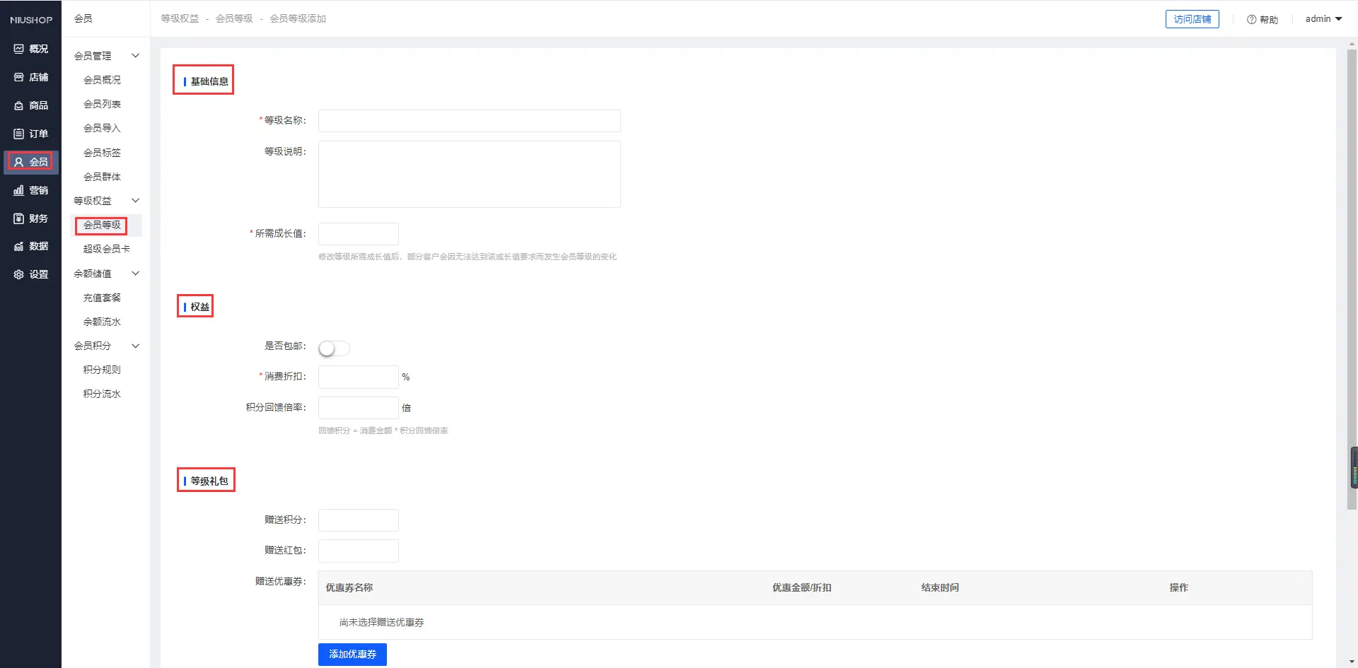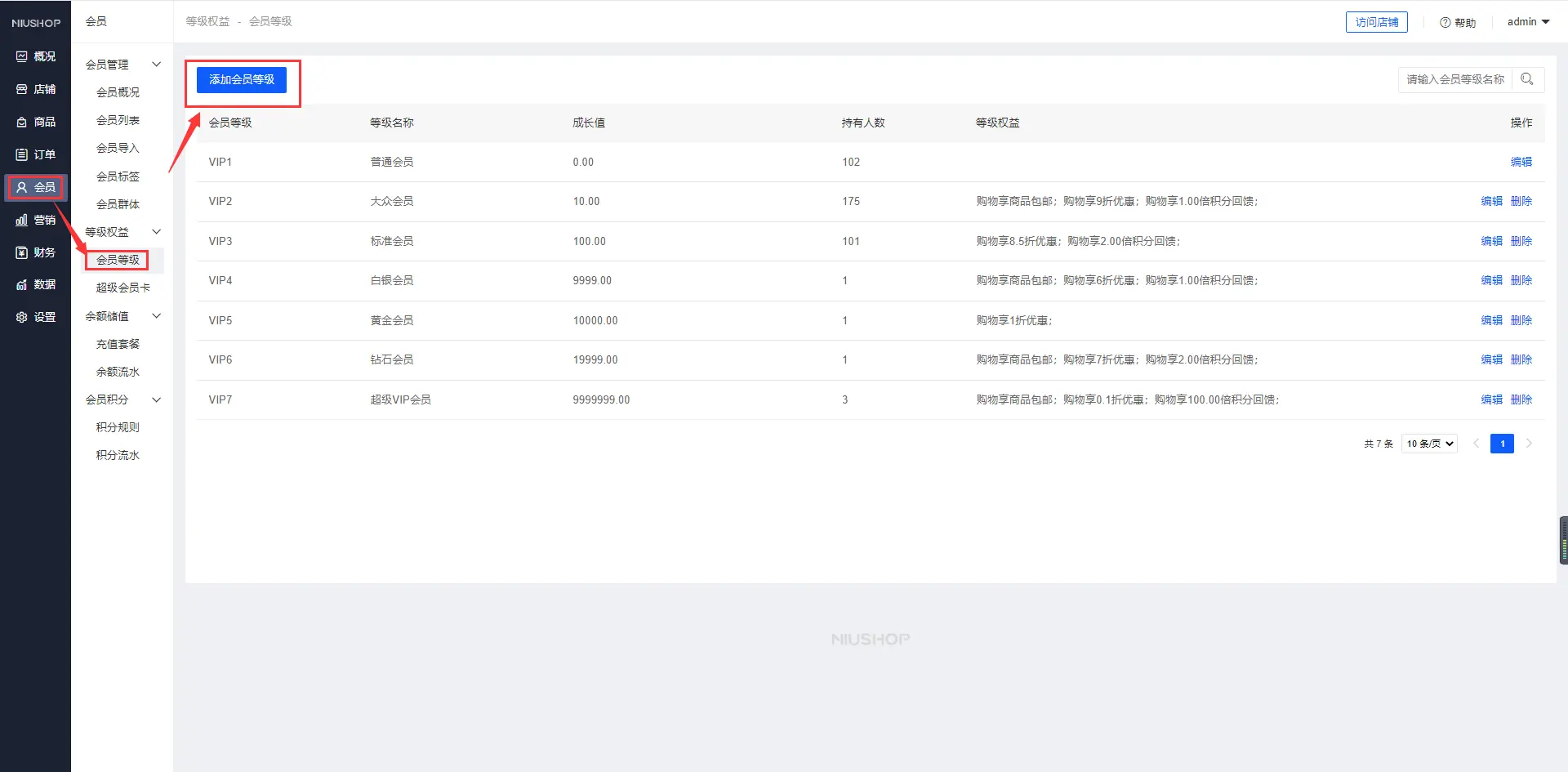 【单商户系统】会员等级的设置