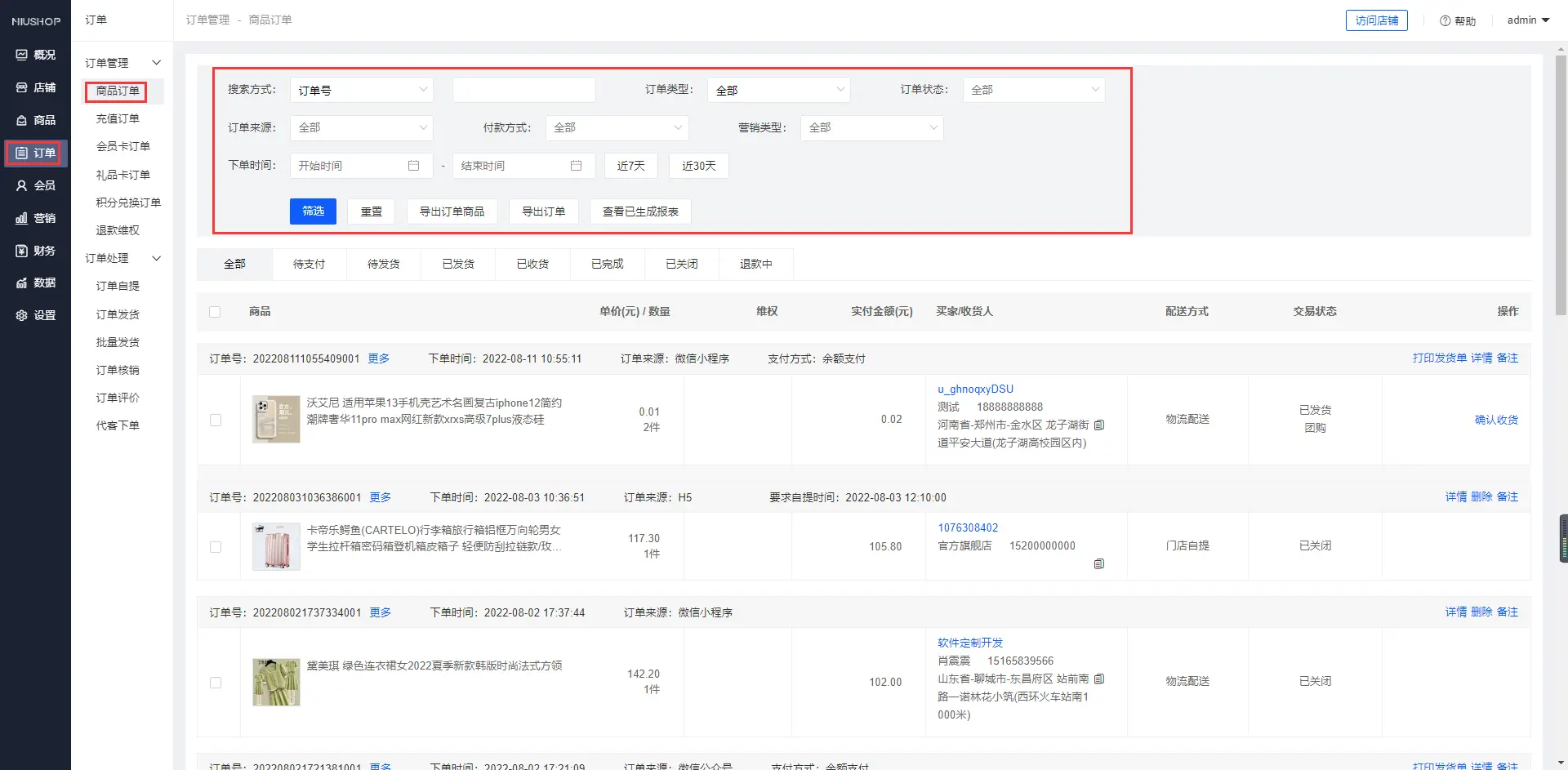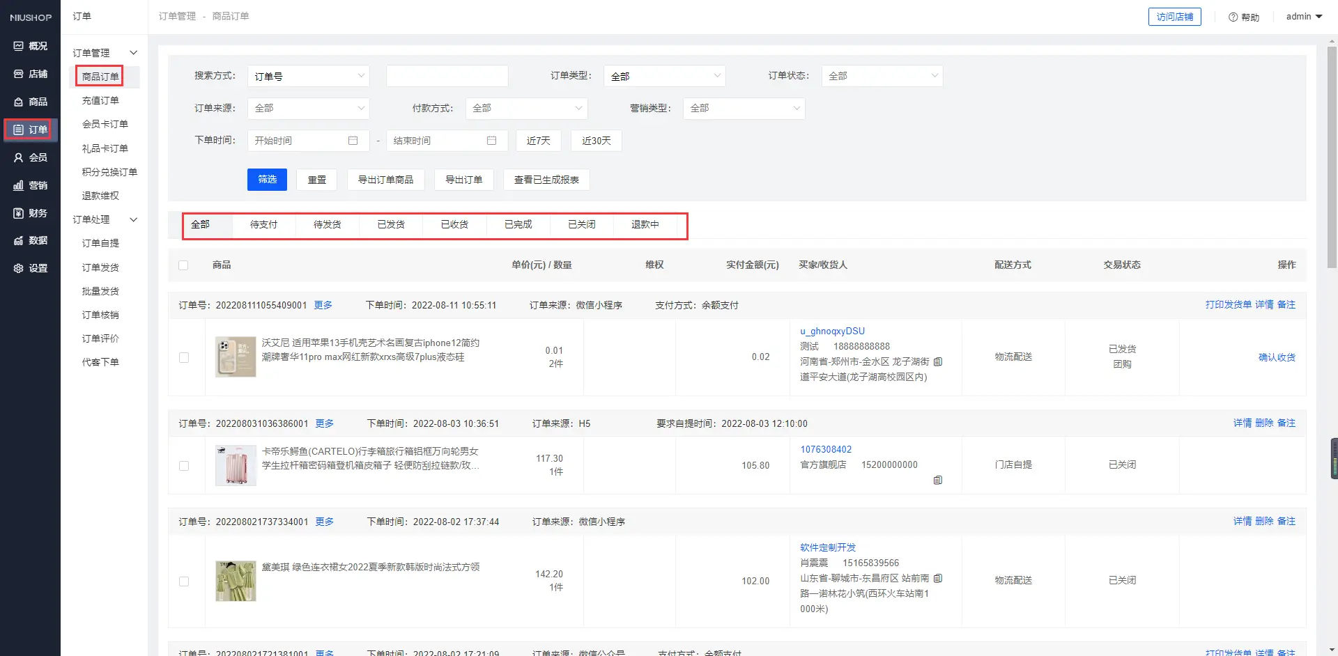 2.展示订单状态,待支付、待发货、已发货、已收货、已完成、退款中等信息