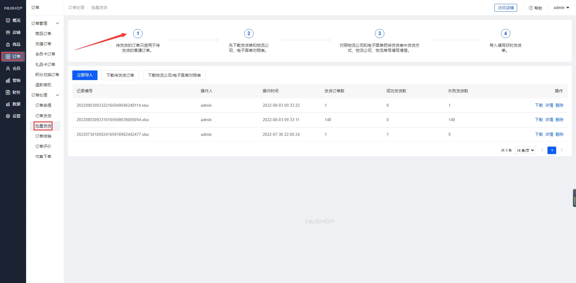 当订单数量过多时,一个一个发货太费时间了,这时可以选择批量发货