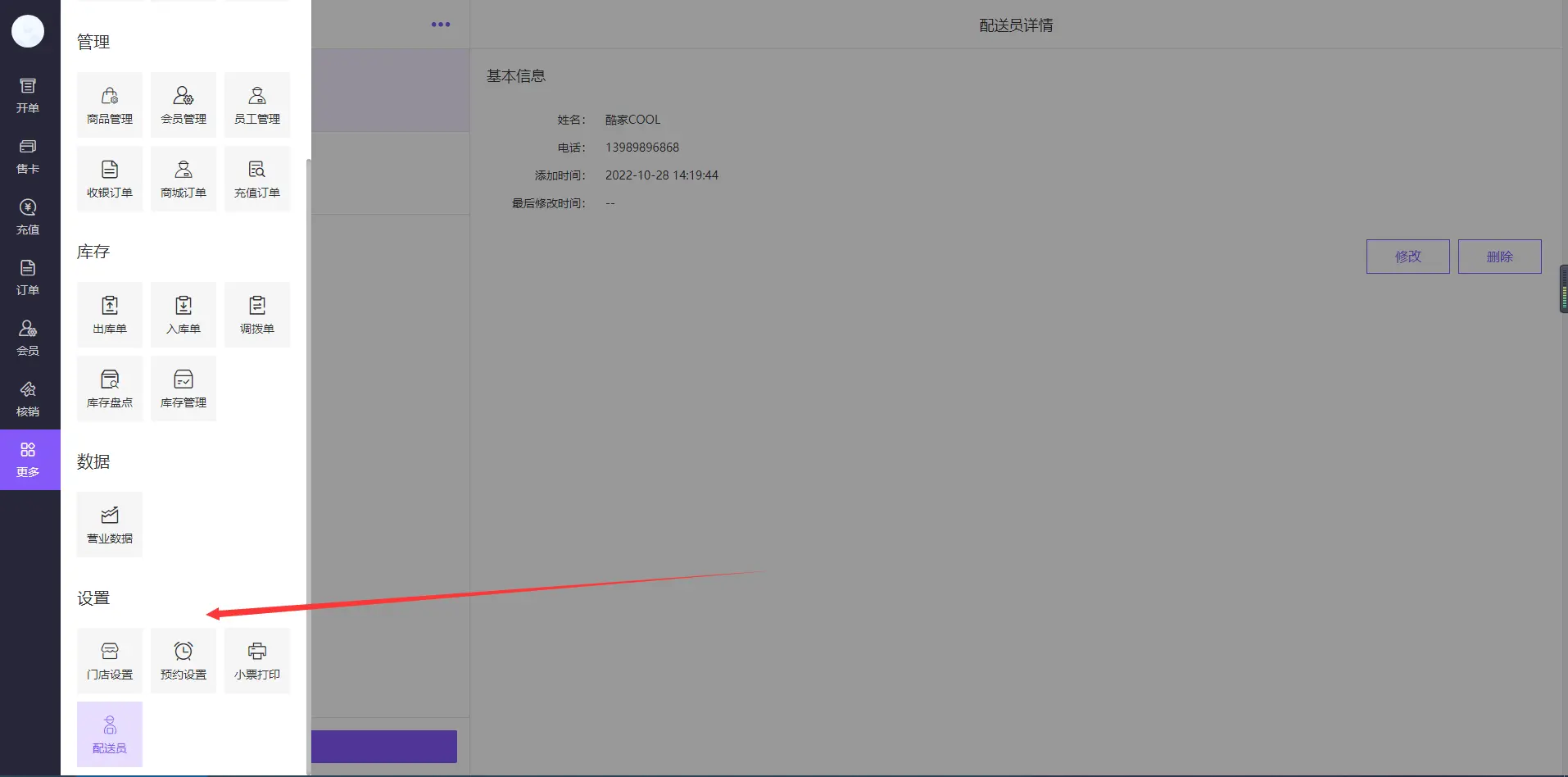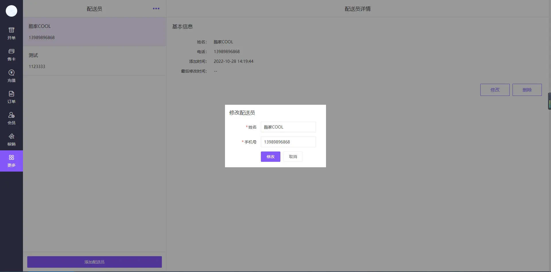 添加打印机配置四、配送员 可添加、修改、删除配送员