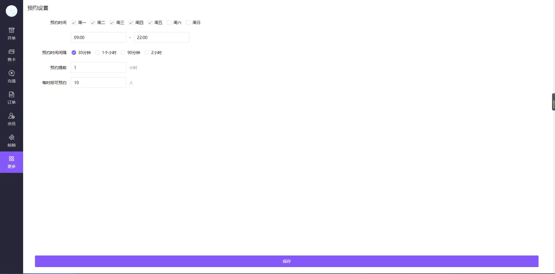 设置预约时间、预约时间间隔、、预约提前多长时间的设置、每时段可预约的人数
